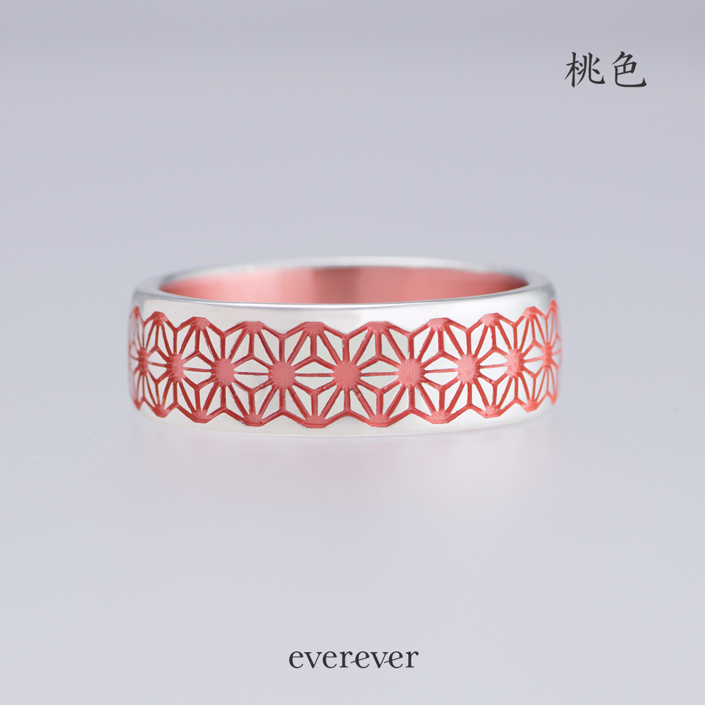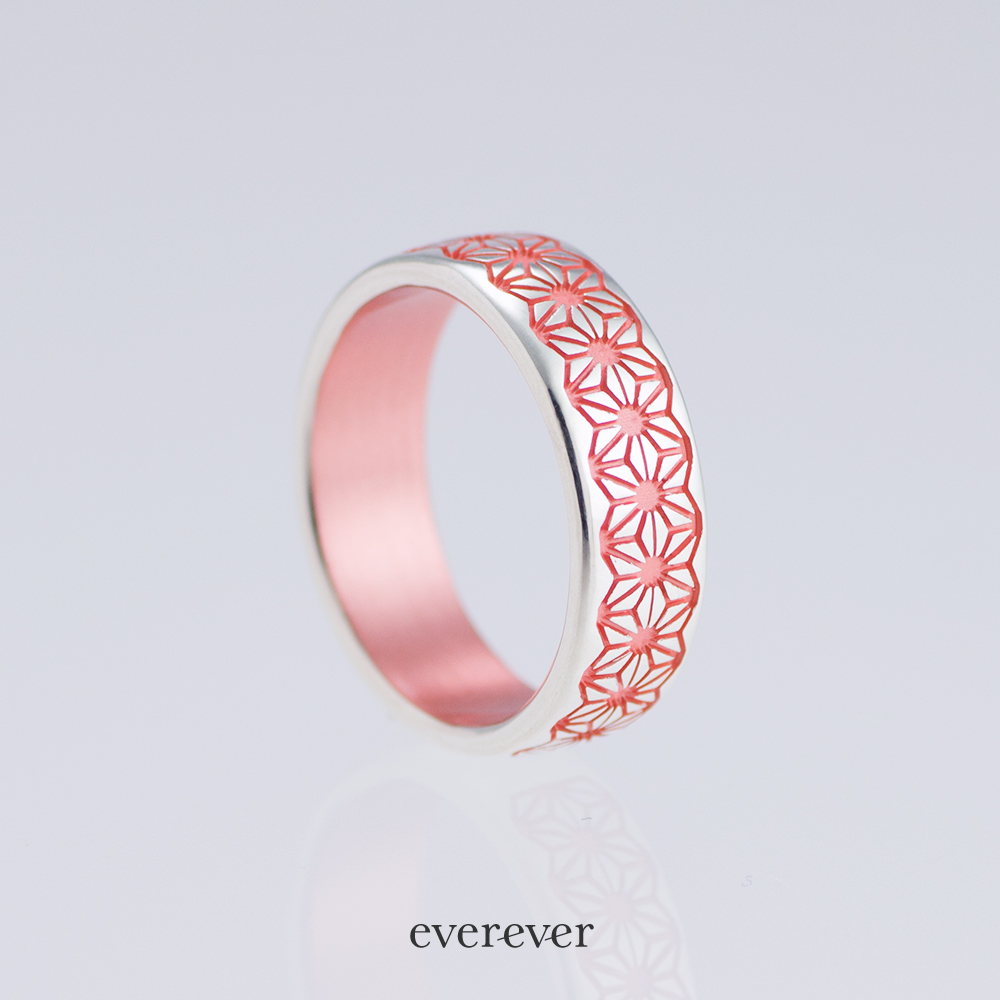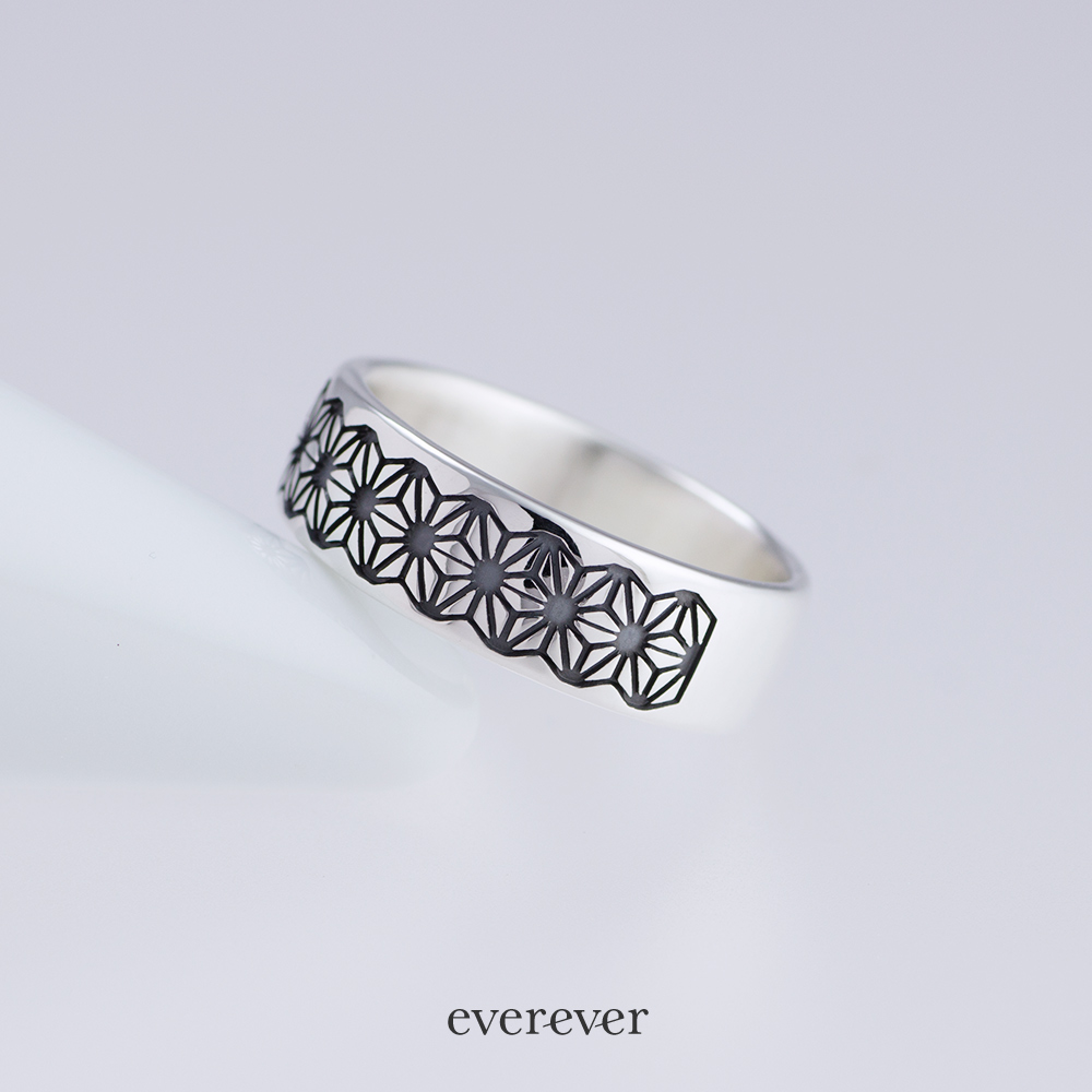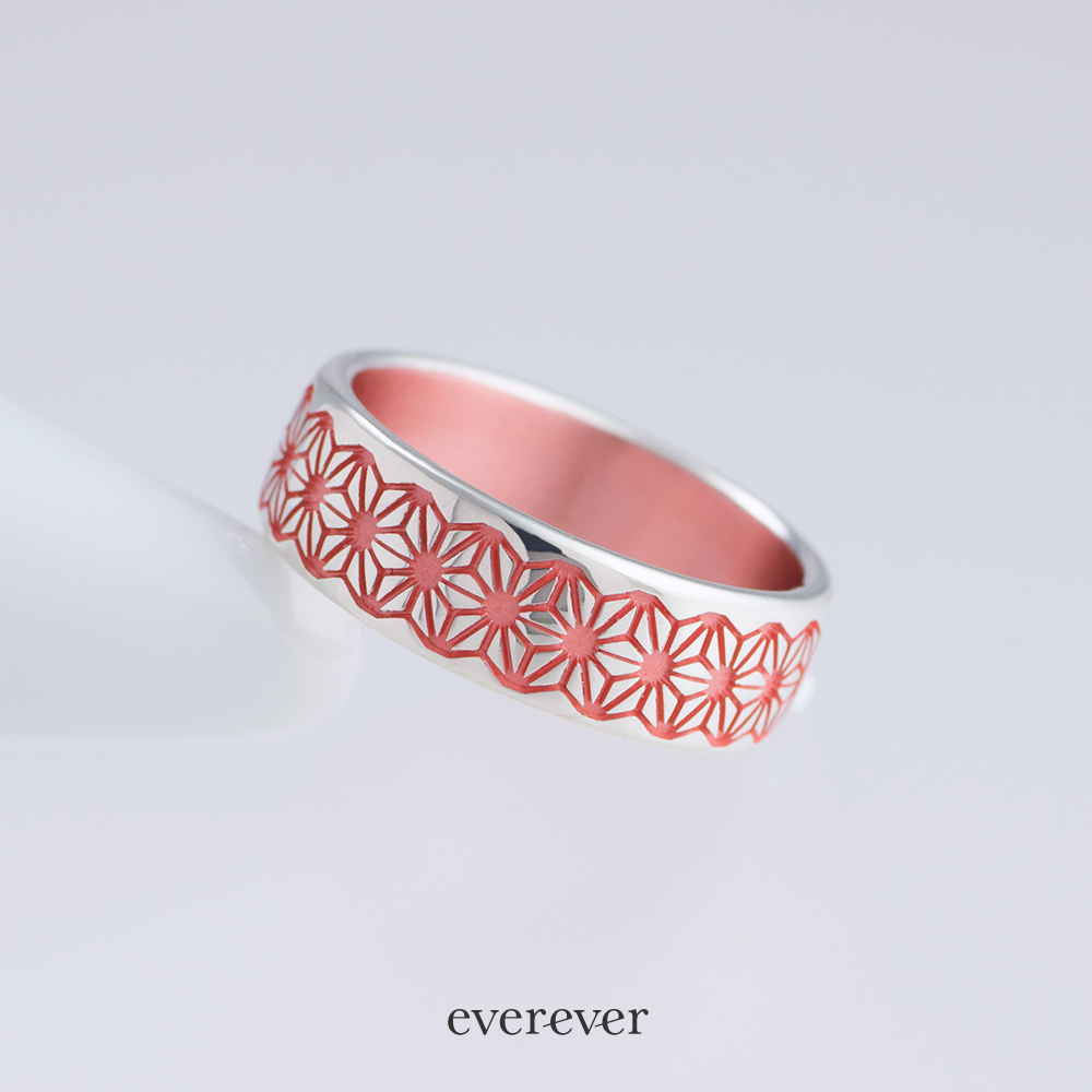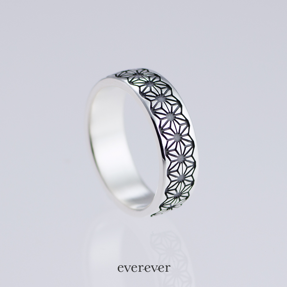 麻の葉(あさのは)文様のリング。