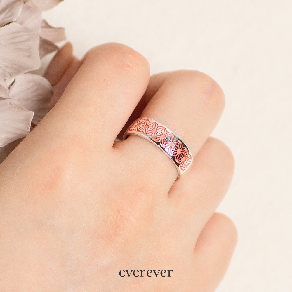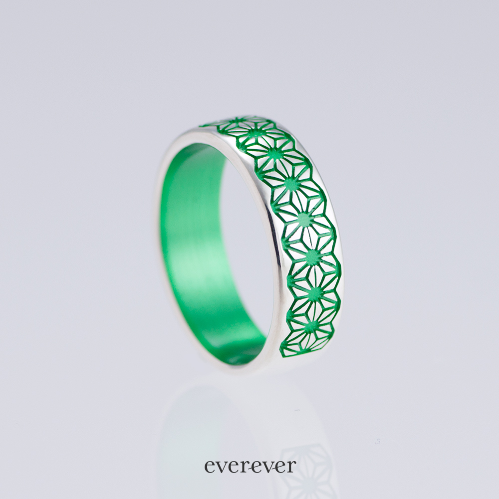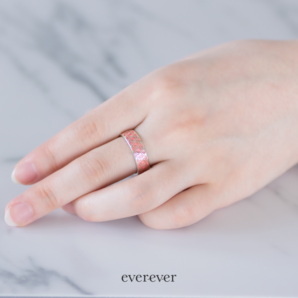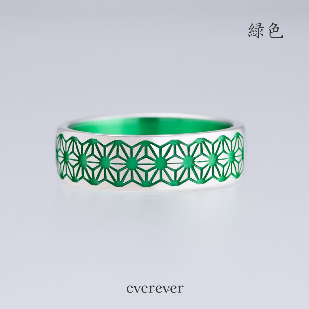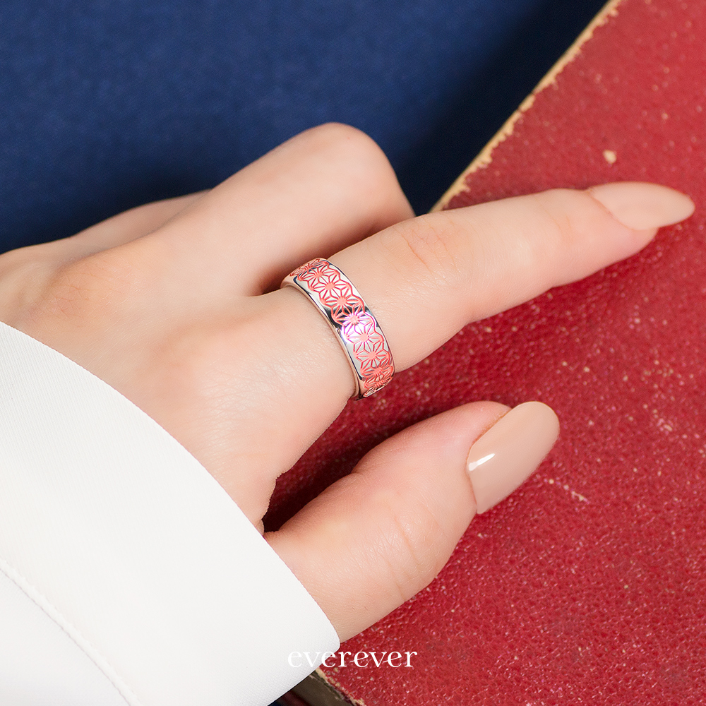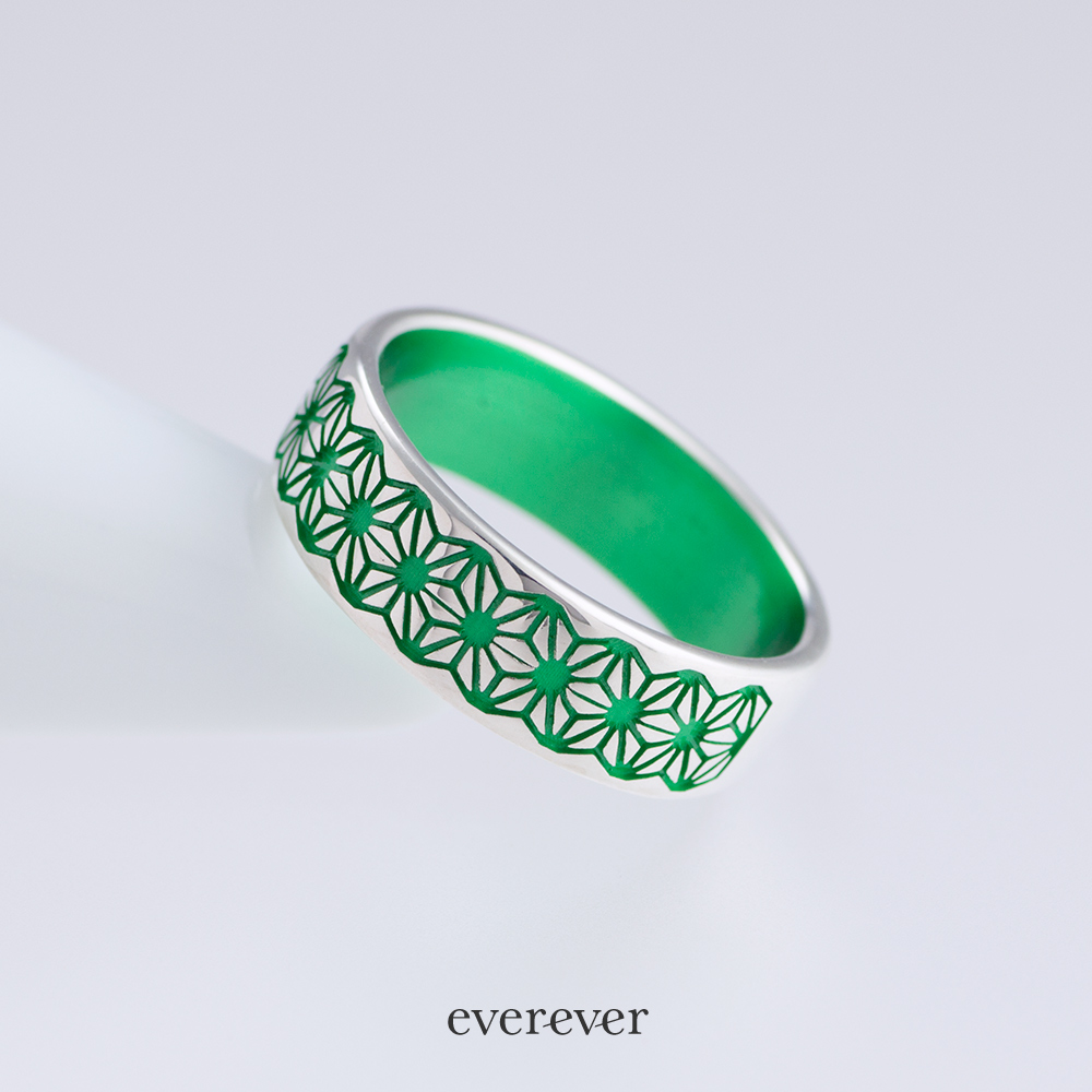麻の葉(あさのは)文様のリング。