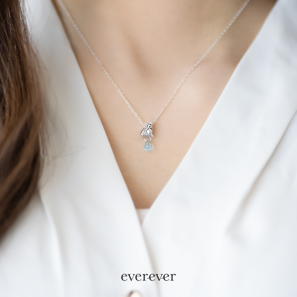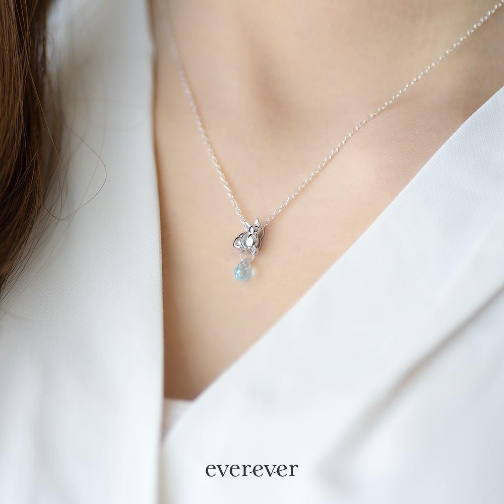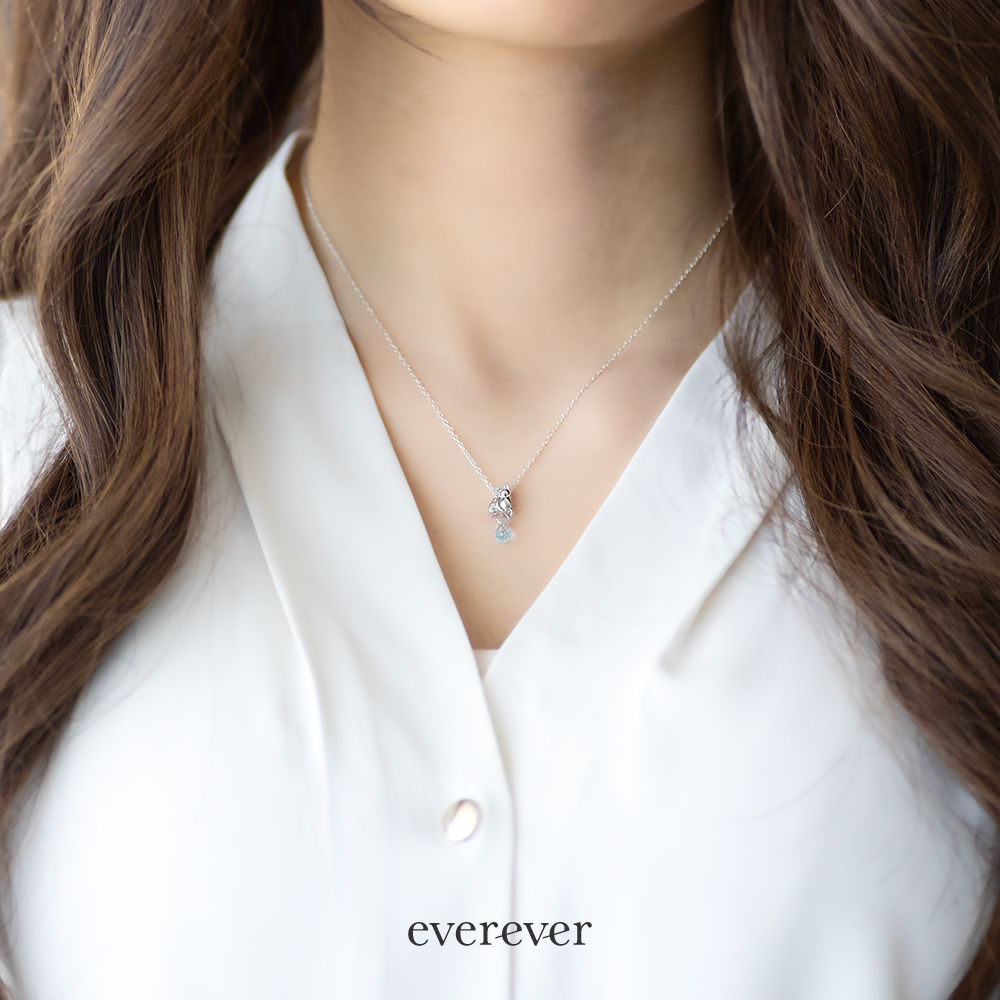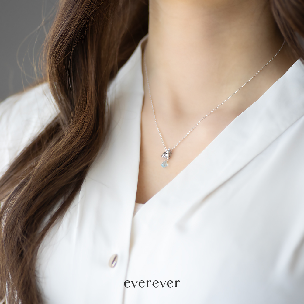 光を受けるたびに水面のきらめきのような美しさを見せ、静かな輝きが胸元にやさしく揺れます。