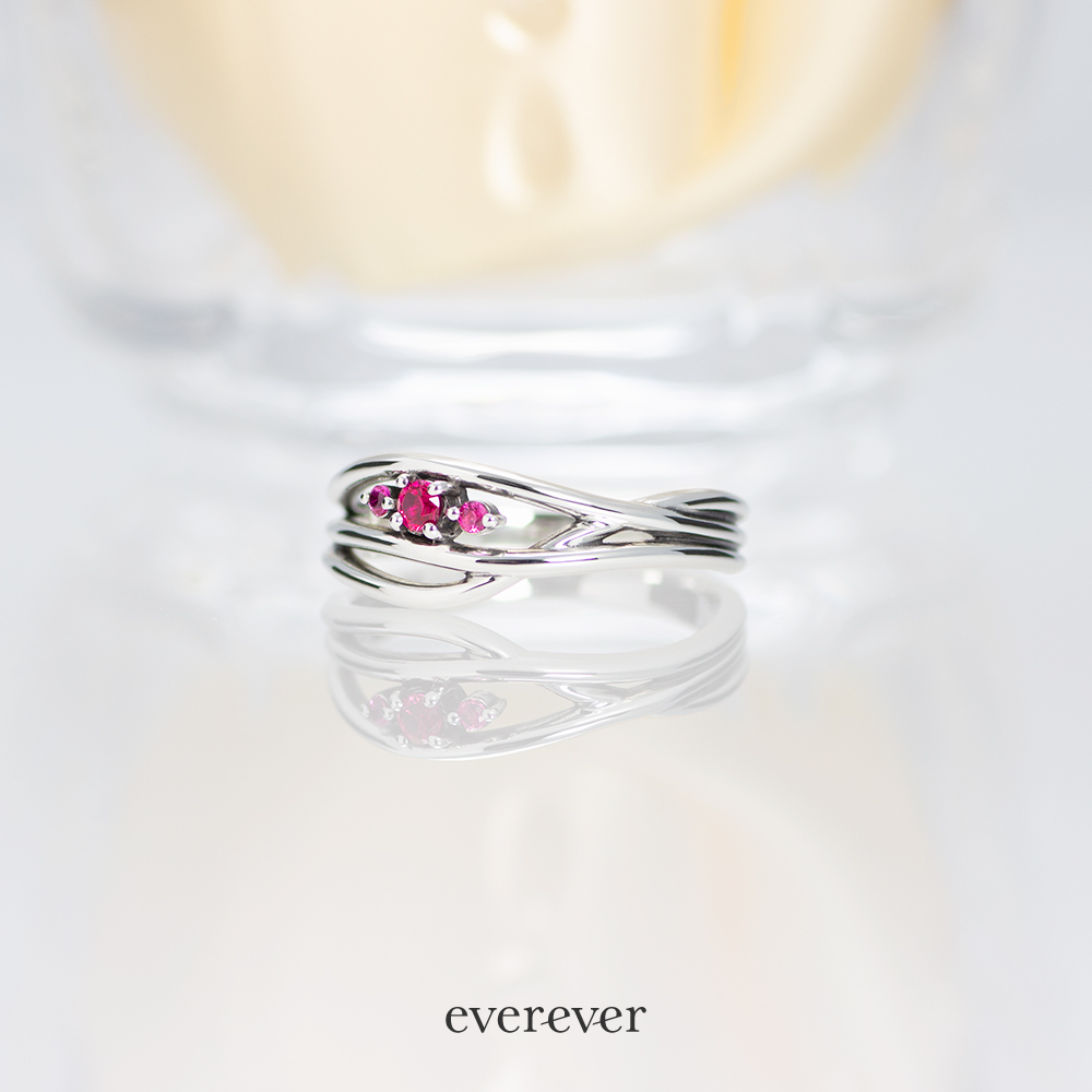 定番の太さ1.4mmのフェデリーニリングに絡まるパスタソースのようなストーンを施しました。