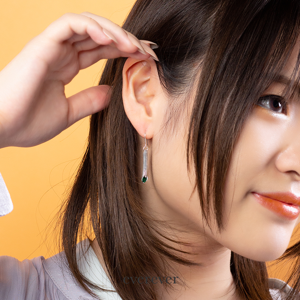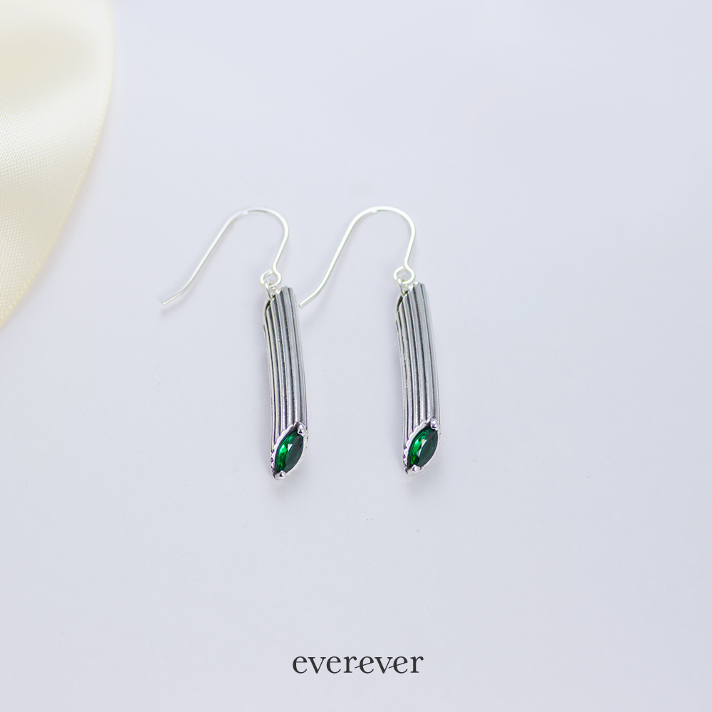 深い赤の合成ルビーは「トマトソース」、鮮やかなグリーンのエメラルドグラスは「バジルソース」をイメージしております。